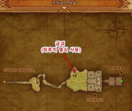 - 프와챗 유적 앞쪽 보물상자를 최후의 열쇠로 열면 '금괴' 획득
