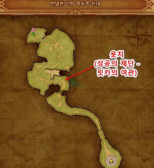 1. 케토스를 타고, 하늘 맵의 북동쪽에 있는 '반델폰 지방 북동쪽 돈대'로 이동후, 중앙부근 폭포 옆에 있는 욧치와 대화하여 '성공의 제단'에 '릿카의 여관'으로 가는 암호를 획득합니다.