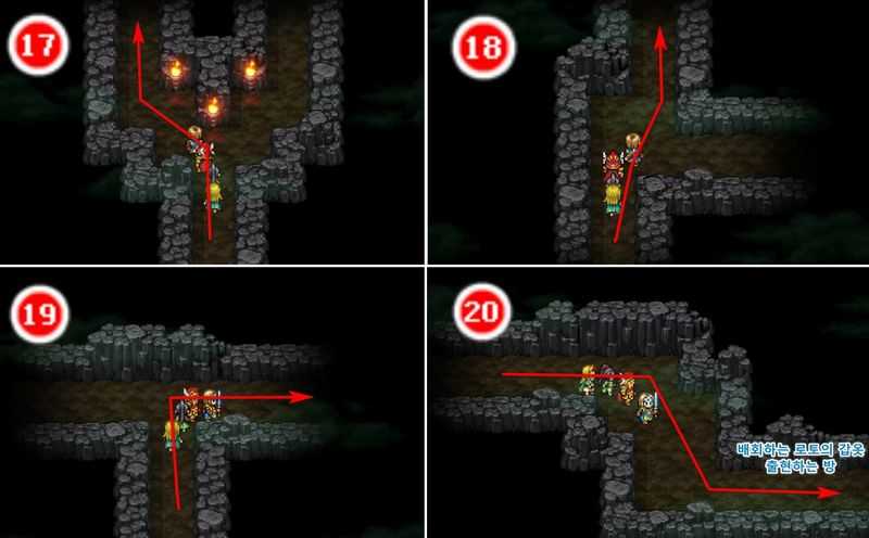 4. 아래 이미지 번호 순서(1번~20번)대로 길을 진행하여, '배회하는 로토의 갑옷'과 배틀해 물리칩니다.