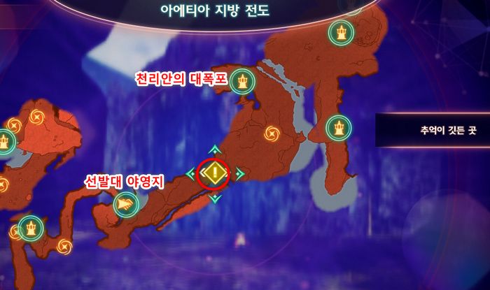 - 랜드마크 '천리안의 대폭포'나 '선발대 야영지'로 스킵트래블후 목적지로 이동하면 될 것입니다.