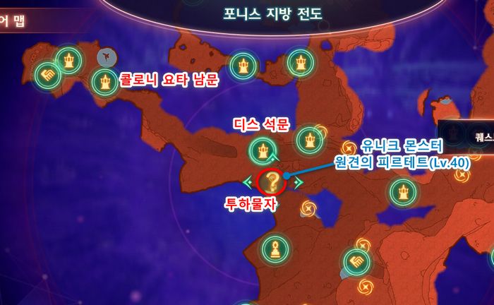 - 만약 히어로퀘스트 - 처음 보는 광경을 클리어했음에도 ?가 뜨지 않는다면, 다른 맵으로 스킵트래블했다가 다시 방문해보시기 바랍니다.