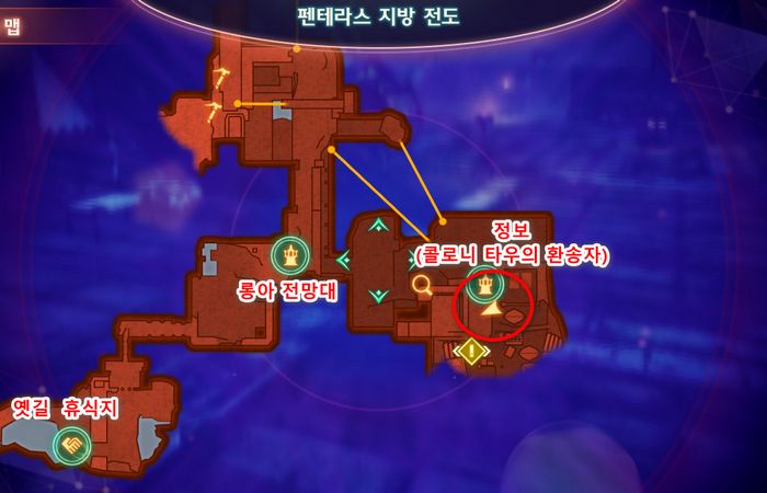 1. '콜로니 타우'에서 '코츠초'와 대화하여 정보(콜로니 타우의 환송자) 획득후, 휴식포인트에서 상담하여 퀘스트를 수주받습니다.
