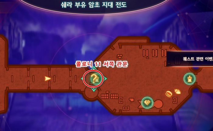 1. 랜드마크 콜로니11 서쪽 관문 근처의 ?에 접근하여 퀘스트를 수주받습니다.
