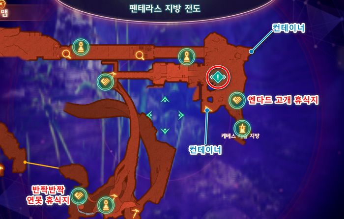 - 엔다드 고개 휴식지 북동쪽에 컨테이너 (고순도 젬 스톤, 청금의 팔찌 등등)
