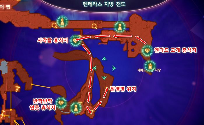 - 랜드마크 '엔다드 고개 휴식지'로 스킵트래블한후 북서쪽으로 가면 될 것입니다.