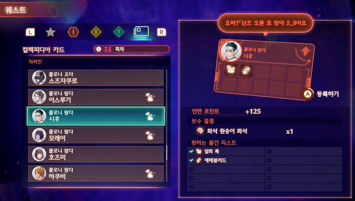 1. 우선 콜로니 람다 '시후'의 컬렉피디아 카드를 2번 등록합니다.