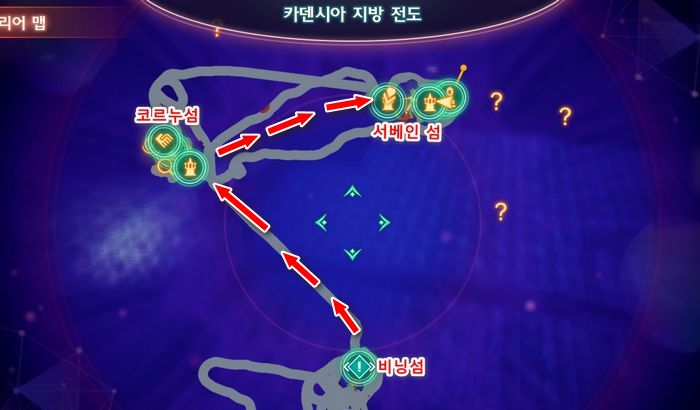 6. 코르누 섬에서 동쪽으로 이동하여, '서베인 섬'의 목적지로 이동합니다.