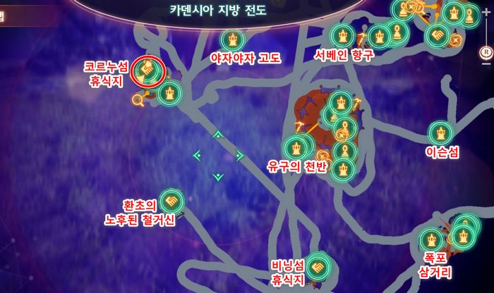 - 휴식포인트 '코르누섬 휴식지'로 스킵트래블후, 남쪽으로 내려가면 나일즈 혹스가 굉장히 많이 있습니다.