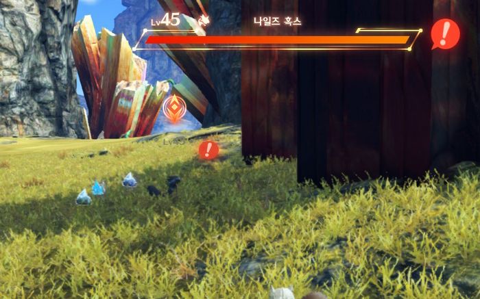- 나일즈 혹스를 잡지 말고, 느낌표(!)가 뜨는 나일즈 혹스 주변에서 기다리고 있으면, 아래와 같이 아이템을 필드상에 방출합니다.