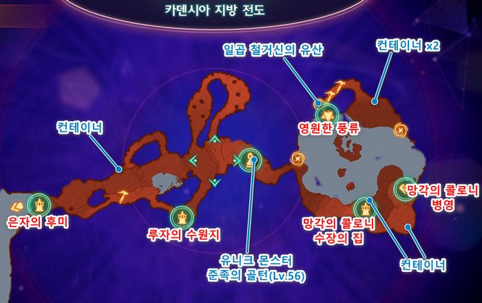 - 상담은 카덴시아 지방 휴식포인트 '후미 휴식지'에서만 가능 (콜로니 뮤 의 북동쪽 바다에 위치)