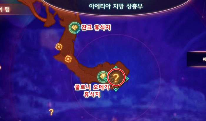 1. 아에티아 지방 상층부 '콜로니 오메가'의 ?에 접근하여 퀘스트를 수주받습니다.