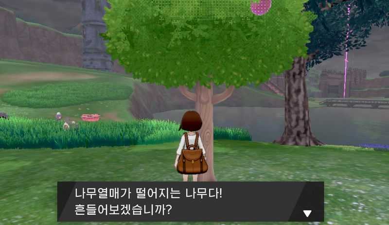 나무열매가 떨어지는 나무를 흔들면 나무열매가 떨어집니다. 그런데 흔드는 것을 계속 반복하다 보면, 나무에서 갑자기 포켓몬이 튀어나와 배틀이 시작됩니다. 배틀이 끝나면 그 포켓몬이 나무열매를 상당수 훔쳐갑니다. 따라서 나무열매가 필요한 경우라면, 적당히 흔드시기 바랍니다.