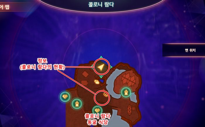 2. 콜로니 람다 '푸른 물의 암봉'의 목적지 이동합니다.