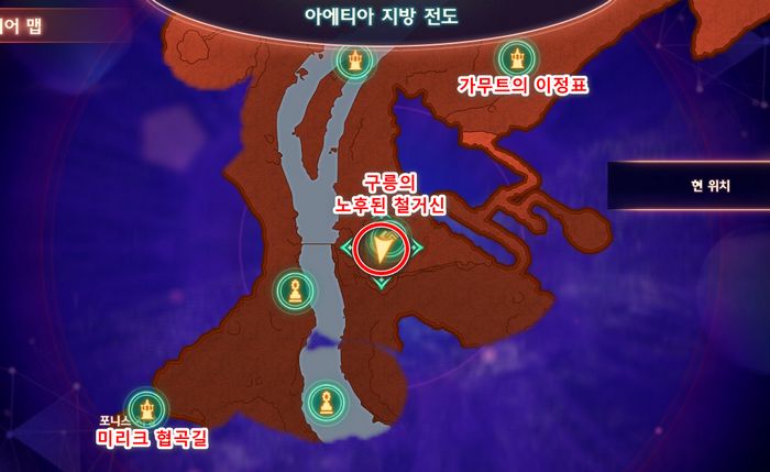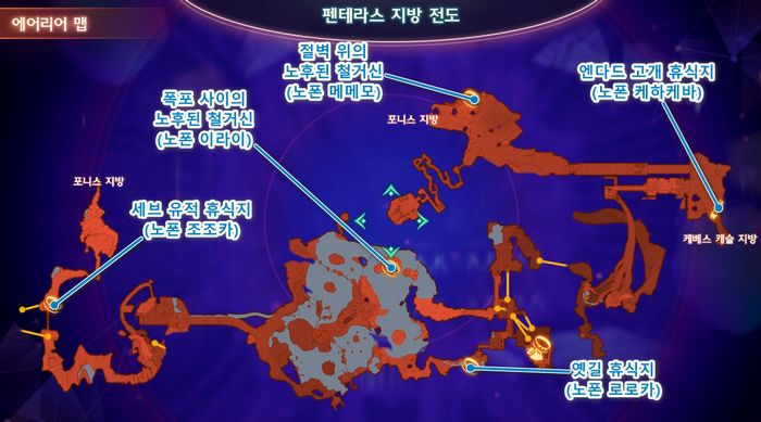- 펜테라스 지방 휴식포인트 폭포 사이의 노후된 철거신 의 '이라이'와 대화 (빨강 노폰석 x1)