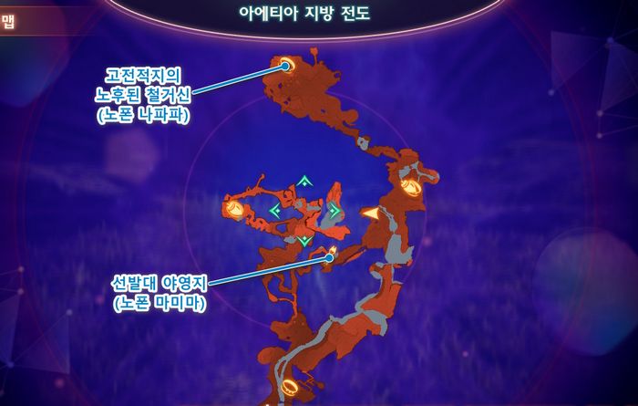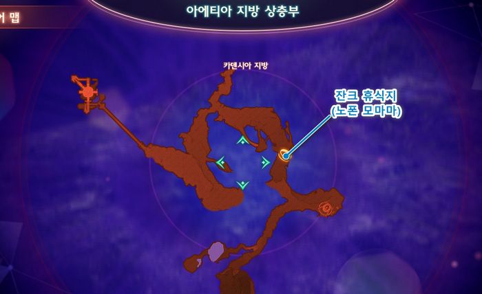 - 아에티아 지방 상층부 휴식포인트 '잔크 휴식지'의 '모마마'와 대화