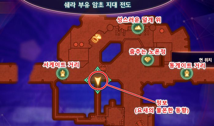 - 쉐라 부유 암초 지대의 '오비르부스 요새'에서 정보(요새의 불온한 동향) x1 획득
