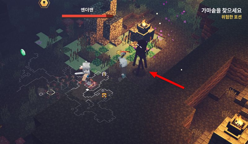 게임 중반에 동굴안으로 들어가게 되는데요. 동굴안에 엔더맨 이라는 중간 보스급 몬스터가 나옵니다.