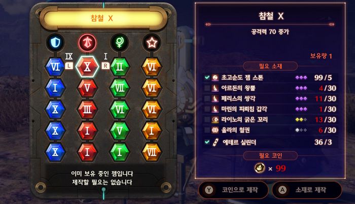 - Ⅰ~Ⅹ까지 순차적으로 제작할 필요는 없으며, 소재만 충분하다면 바로 X젬을 제작할 수도 있습니다.