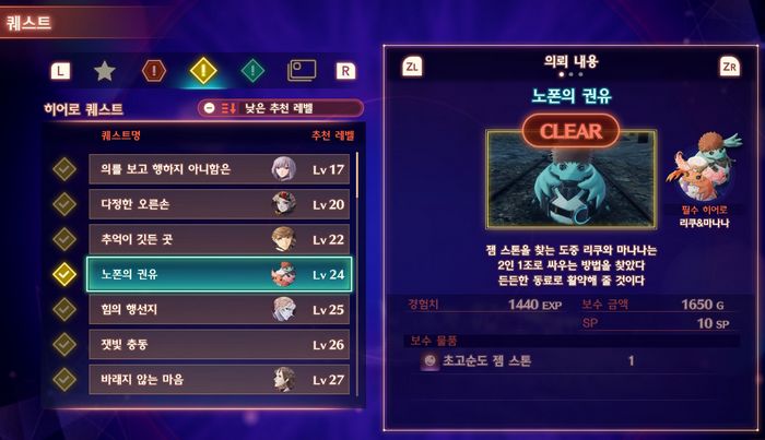 제노블레이드3 히어로 퀘스트 및 각성 퀘 목록 클리어방법