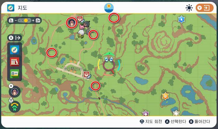 - 남부 에리어 1에 출현하는 일부 트레이너 위치는 아래 이미지 참고하시기 바랍니다.