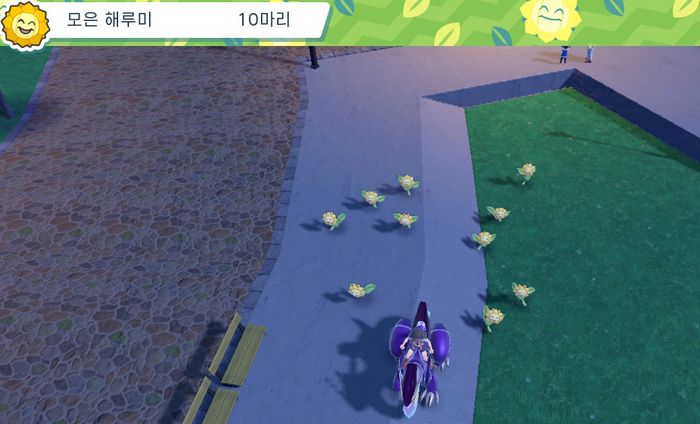 3. 체육관 밖 동쪽에 있는 해루미 광장에서 여성과 대화하여 체육관 테스트 '해루미 모으기'를 합니다.