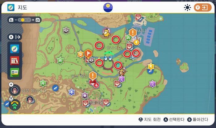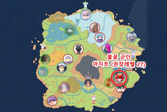 - 동부 에리어 2에 있는 일부 트레이너 위치는 아래를 참고하시기 바랍니다.