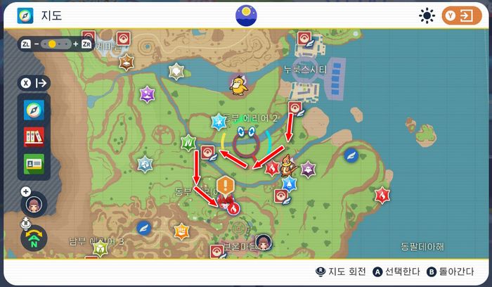 이 글은 포켓몬스터 스칼렛 바이올렛 동부 에리어 2 ~ 불꽃 군단 아지트 까지 공략과 진행순서에 대한 내용입니다.