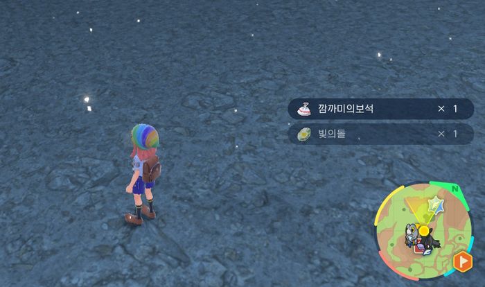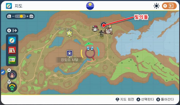 오야호수의 북쪽에 있는 누룽지 숲길의 북동쪽 살짝 높은 곳에 있는 빨간 몬스터볼을 조사하면 빛의돌 x1 획득