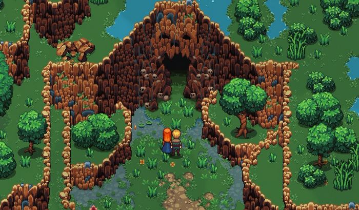 동굴 남쪽의 절벽을 내려간 뒤, 서쪽으로 계속 이동합니다.