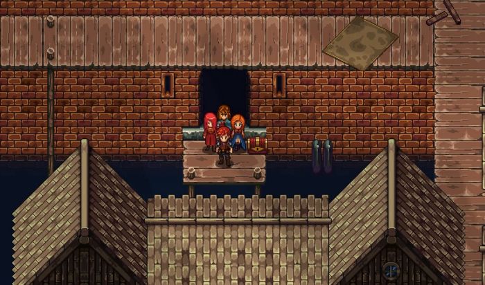 - 항구의 북동쪽 나무 다리를 건너 가면 안쪽에 '매그놀리아'가 있는 집이 있습니다. '매그놀리아' 뒤쪽의 문을 통해 동쪽으로 가, 남쪽으로 나가면 난간의 빨간 보물상자에서 '목검' 획득 (시에나의 무기입니다)