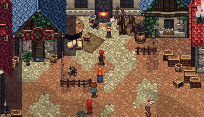 - 빨간 지붕 집 서쪽에는 대장장이의 집이 있으며, 대장장이의 집 남쪽 보물상자에서 마비 치료약 x2 획득