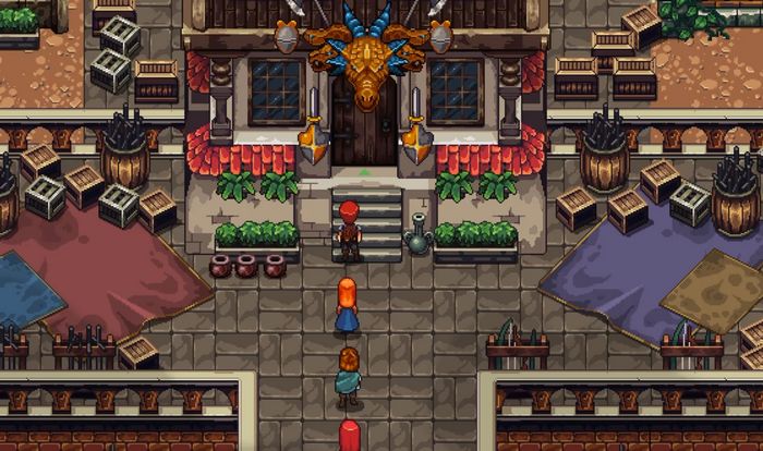 대장장이의 집 안으로 들어가면, 카운터에 대장장이의 아내가 있고, 그 뒤쪽에 문이 있습니다. 뒷문으로 나가면 빨간 크리스탈이 있으므로, 조사하면 HP 증가 크리스탈 x2 획득