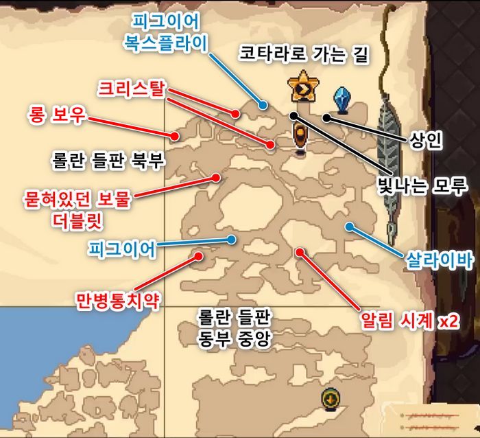 롤란 들판은 매우 넓으며, 아래 번호 순서대로 탐험하도록 하겠습니다.