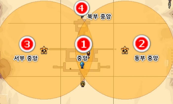 - 중앙 부근에 빠른이동 크리스탈이 보이므로, 거기를 중심으로 설명합니다.