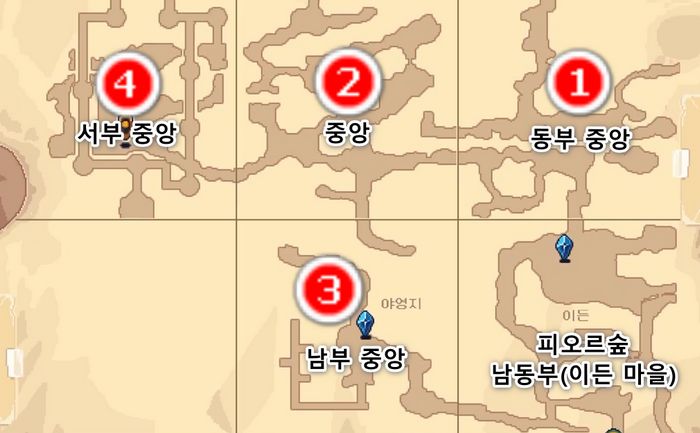 - 거기서 좀더 남쪽으로 내려가면 피오르 숲 남부 중앙 영역으로 화면이 전환됩니다.