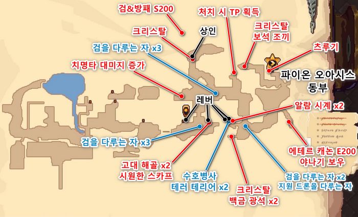 - 문을 통과한 뒤 서쪽 보물상자에서 '치명타 대미지 증가' 크리스탈