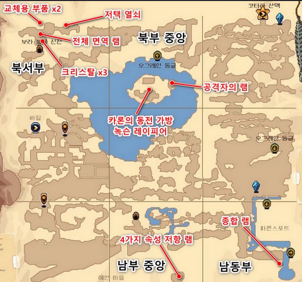 - 중앙 영역의 빠른이동 크리스탈이 있는 곳에서 동쪽으로 가면 금속상자에서 패시브 램