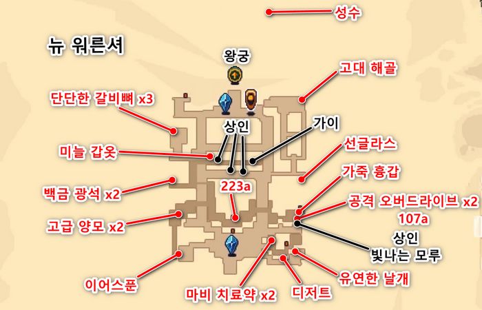 - 상인이 있는 곳 남동쪽으로 뛰어내릴 수 있으며, 그 아래에 상인이 2명 더 있습니다(판매물품이 조금씩 다릅니다)