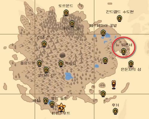 뉴 워른셔는 은둔자의 섬에서 북서쪽에 위치하고 있습니다. 비행선이 개방되면 가장 먼저 방문해 볼 수 있는 가까운 거리입니다.
