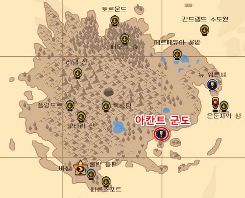 은둔자의 섬에서 비행선을 타고 남서쪽으로 내려간 뒤, '아칸트 군도'에 진입합니다.
