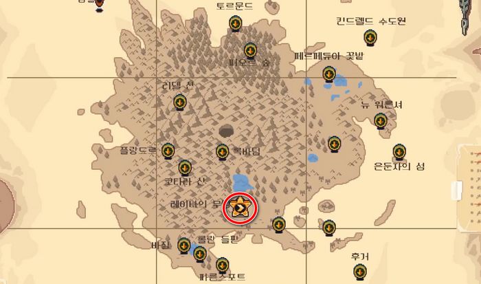 이제 월드맵을 확인해보면, 레이나의 무덤 위치가 표시되므로, 파른스포트 북동쪽에 있는 '레이나의 무덤'으로 가서 메인퀘스트를 진행할 수 있습니다.
