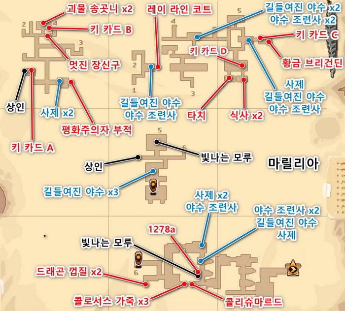 - 우리에서 북쪽으로 간뒤 동쪽으로 가면 사제 x2, 야수 조련사 x1과 교전