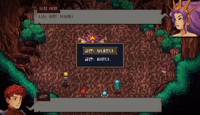 | 글렌: 싸운다. | 바로 요정 여왕과의 교전이 발생 물리치면, 래드햇이 옵니다만, 추후 새로운 요정 여왕이 태어나고 어떤? 이벤트가 발생합니다. |