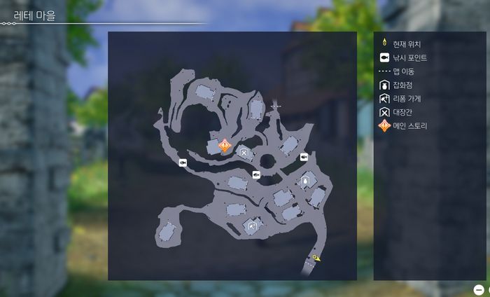 앞으로 이동해 나무계단을 내려가, 미니맵상에 주황색 느낌표(!)가 있는 아치형 문으로 가면 레테마을입니다.