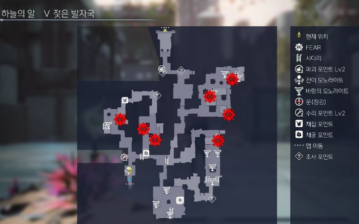 이제 서쪽으로 이동하면 또다른 하늘색 장치(조사포인트)가 있고, 그 옆에 파괴포인트(Lv.2)가 있습니다.