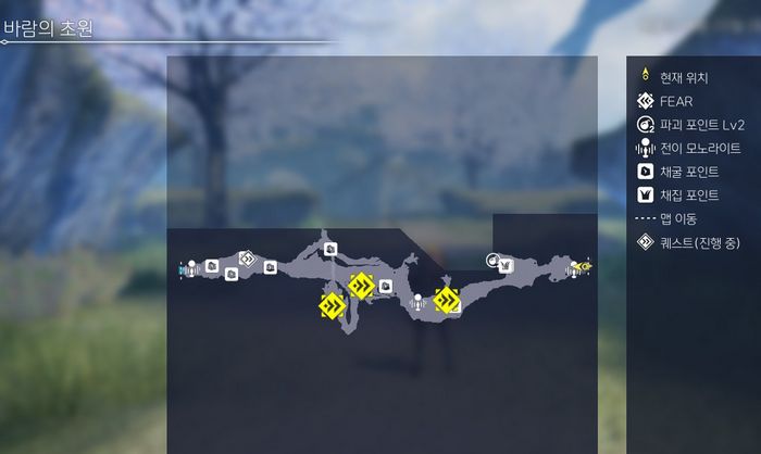 예전에 메인스토리 1화를 진행할때, 단단한 돌을 채집하러 바람의 초원에 잠깐 갔었습니다만, 정체불명의 사람 2명이 서 있어서 동쪽으로 더 이동할 수 없었을 것입니다.