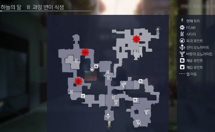 식물벽(빨강)에서 동쪽으로 이동하면 FEAR 3마리가 있는 공터에 도착합니다.