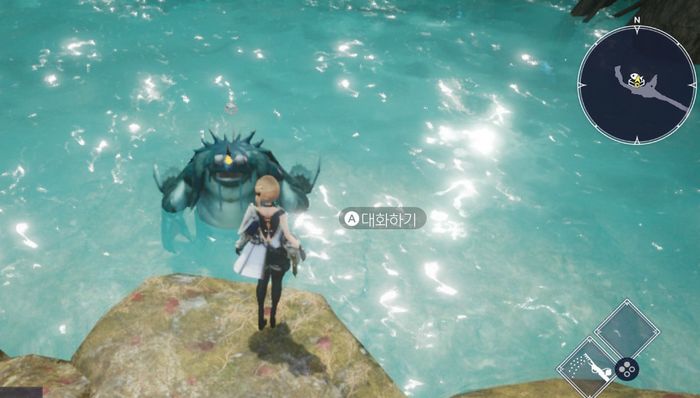 수상한 연못 앞의 반짝이는 것을 조사해 낚시하기를 하면 '사화긴'이 나타나며 낚시 기술 Lv2를 얻을 수 있습니다.