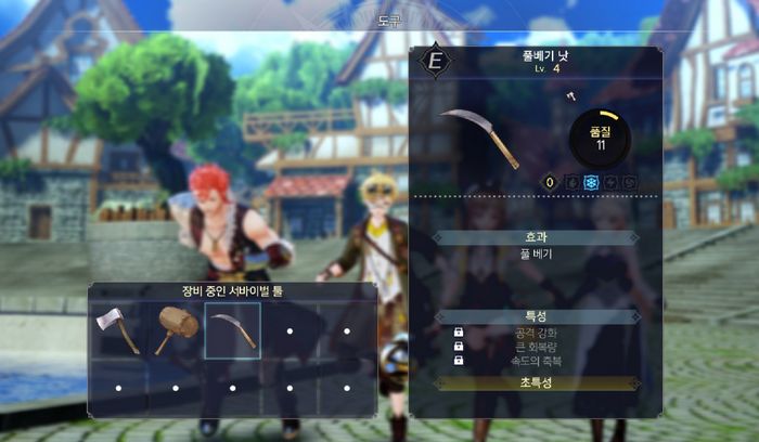 해머는 쉽게 조합할 수 있습니다만, 풀베기 낫은 커다란 뼈 + 연마제가 필요합니다.