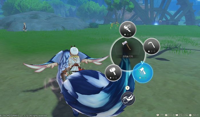 서머너즈 벨을 조합후, 도구에 장착(아틀리에 안에서 장착 가능)하면 필드에서 L버튼 + Y로 영수를 소환할 수 있습니다.